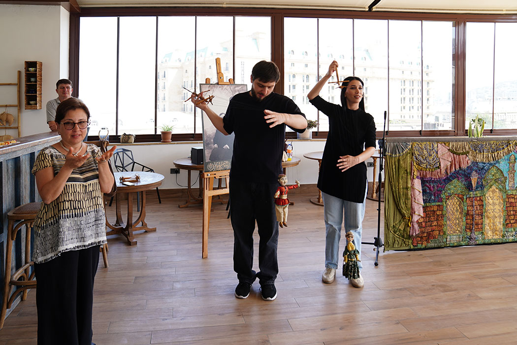 В связи с Международным днем защиты детей, при участии Центра традиционных промыслов Администрации историко-архитектурного заповедника «Ичеришехер» и в сотрудничестве с Агентством социальных услуг при Министерстве труда и социальной защиты населения Азербайджана, в Бакинском театре марионеток была проведена встреча с группой школьников из Учреждений обслуживания «Детский дом» №2 и №3. Наши юные гости с удовольствием общались, рисовали, раскрашивали миниатюрные тарелочки «Девичья башня» и посмотрели фрагменты спектакля «Аршин мал алан» в исполнении Айтен Гурбановой и Фикрета Гаджиева – самых молодых актеров нашего театра.